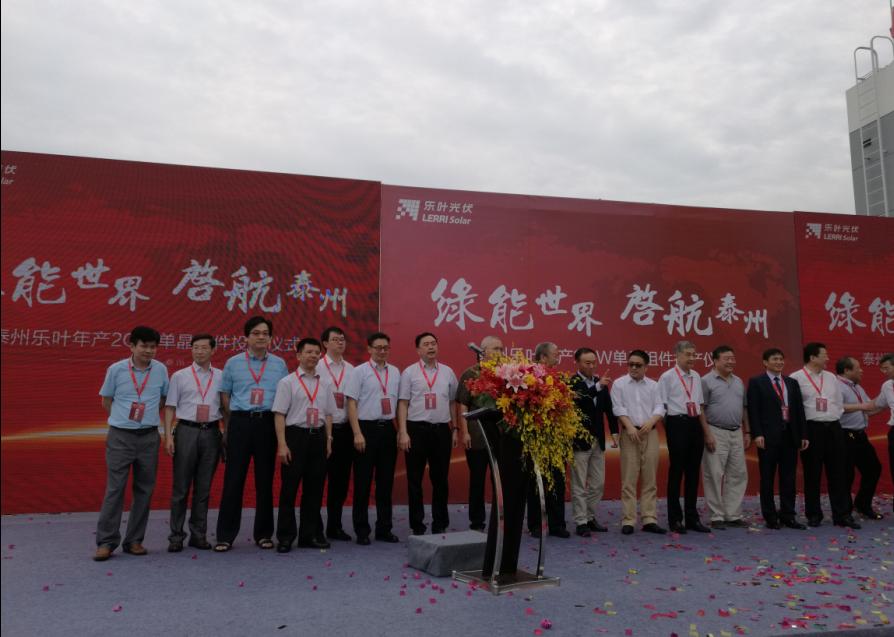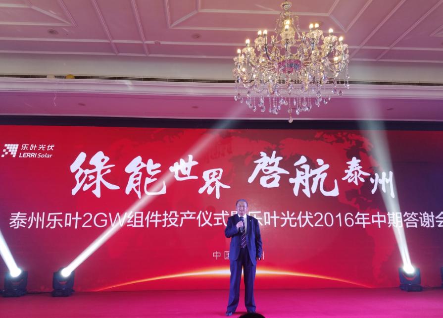 2016年9月6號,細雨綿綿,彩旗飄展,江蘇泰州市海陵區(qū)隆基樂葉2GW太陽能電池組件一體化項目舉行隆重的投產(chǎn)儀式。隆基股份董事長鐘寶申發(fā)表主旨演講。國務院參事、中國可再生能源學會理事長石定寰、國家發(fā)改委國際新能源研究所所長王進、招商新能源CEO李原、泰州市海陵區(qū)徐克儉書記等先后發(fā)表了熱情洋溢的講話。充分肯定了泰州樂葉建設(shè)的高速度、產(chǎn)能的高效化、盛贊隆基股份已成為國際單晶硅、硅片、電池、組件的最大供應商之一。