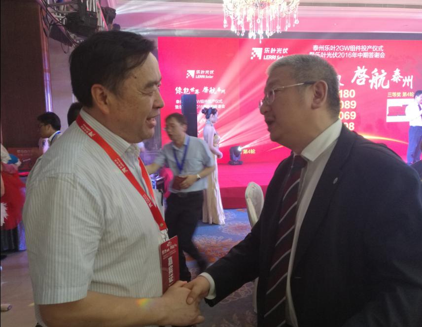 趙振元同志與樂葉光伏董事長李文學在慶典午宴上親切交流