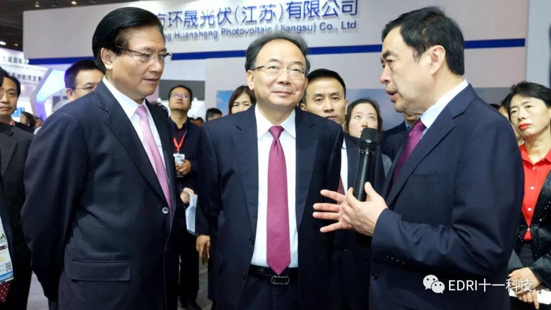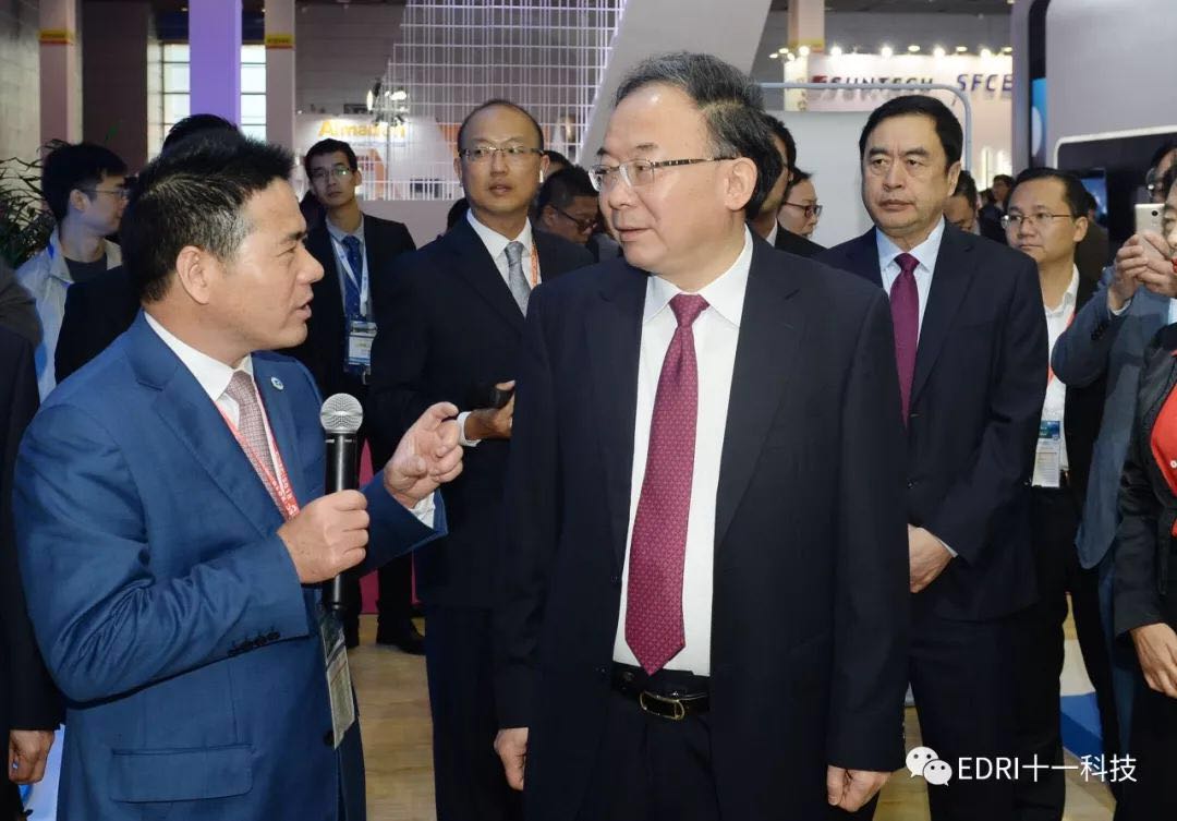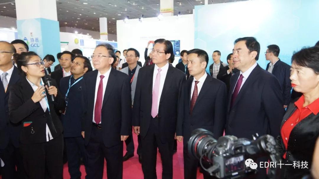 十一科技董事長趙振元陪同市委、市政府領導參觀了保利協鑫、遠景能源、中環、遠東集團、中設國聯等參展商展臺,了解各企業最新產品、技術等。